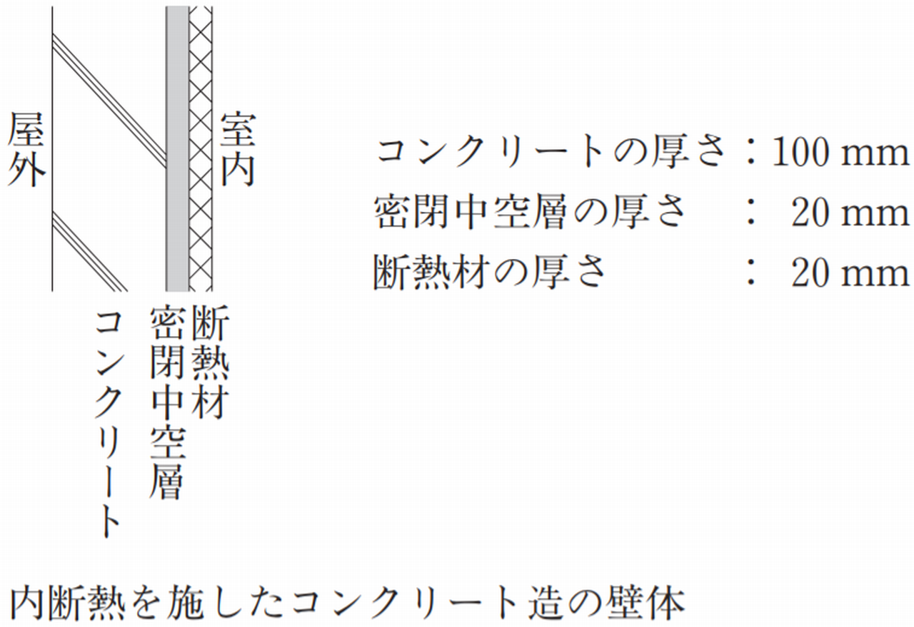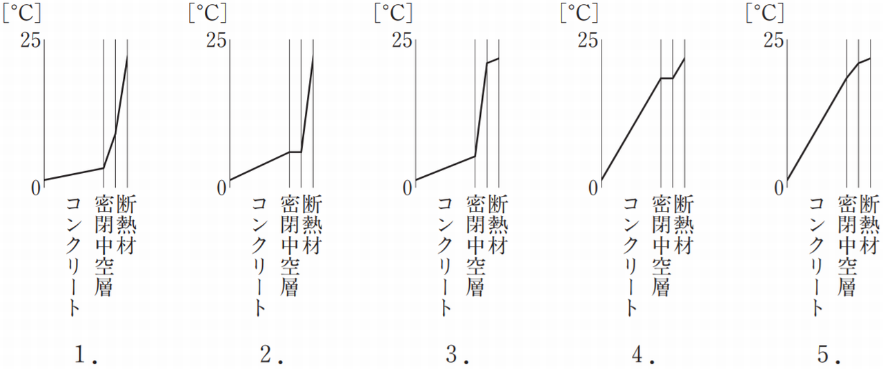 図に示す内断熱を施したコンクリート造の壁体の内部温度分布として、